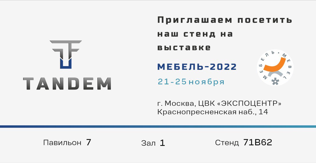 Приглашаем Вас посетить наш стенд на 33-й Международной выставке «Мебель, фурнитура и обивочные материалы», которая пройдет в период с 21 по 25 ноября в «ЦВК Экспоцентр», г. Москва.